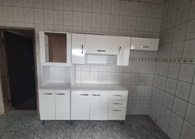 Casa com sala , 01 dormitório, banheiro, banheiro, cozinha com armários e lavanderia.