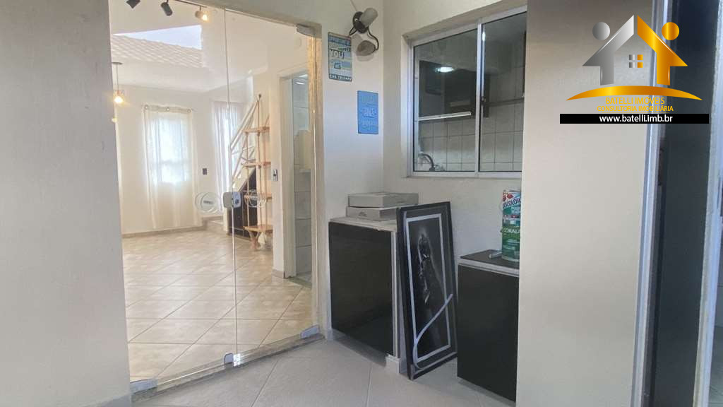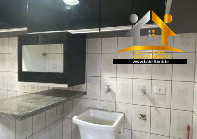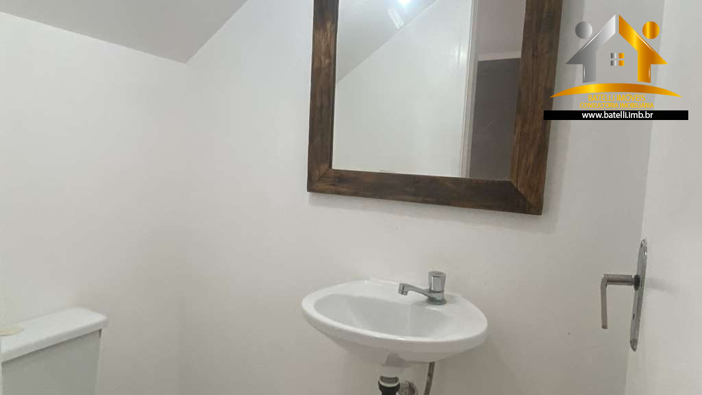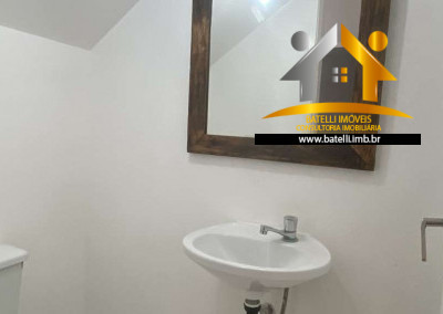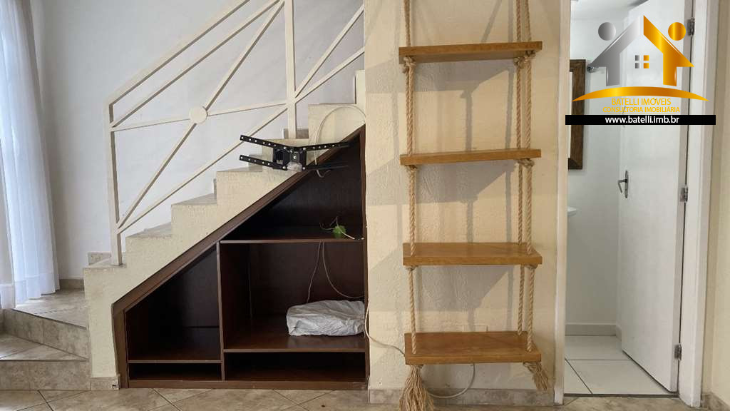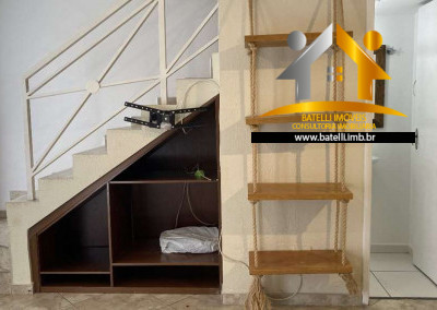 Casa com entrada social e serviço, living com lavabo para 3 pequenos ambientes com lustres instalados, sala de estar/TV, jantar e espaço para bar em baixo da escada, 02 dormitórios com armários e outro dormitório com beliche, banheiro com bancada, pia, espelho e box de vidro, cozinha com interfone, armários planejados, bancada, pia e gabinetes, área de serviço integrada à cozinha, com tanque e espaço para máquina, entrada de serviço independente pelo corredor lateral, abastecimento de água da Sabesp e armazenamento com 500 litros.