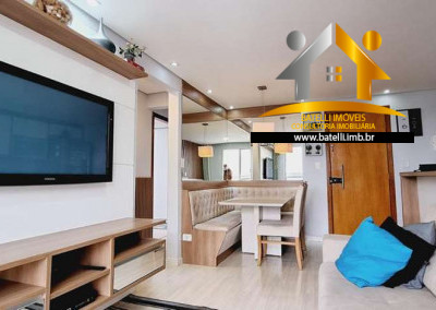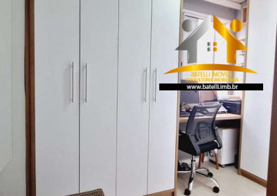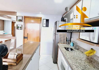 Apartamento com sala com painel/reck para home theater, com piso em porcelanato, varanda fechada com vidro, bancada com pia e churrasqueira carvão, cozinha integrada à sala, com ótimos armários planejados, 03 dormitórios com planejados e piso vinílico, sendo 1 suíte com painel para TV e criados-mudos, 02 banheiros com gabinete e box de vidro.