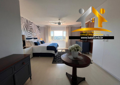 Living com 3 ambientes integrados com varanda com vista para o Golf Clube;