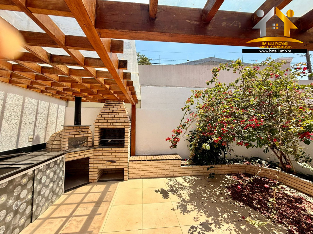 Quintal amplo, com um lindo pergolado e churrasqueira, forno de pizza e pia de apoio;