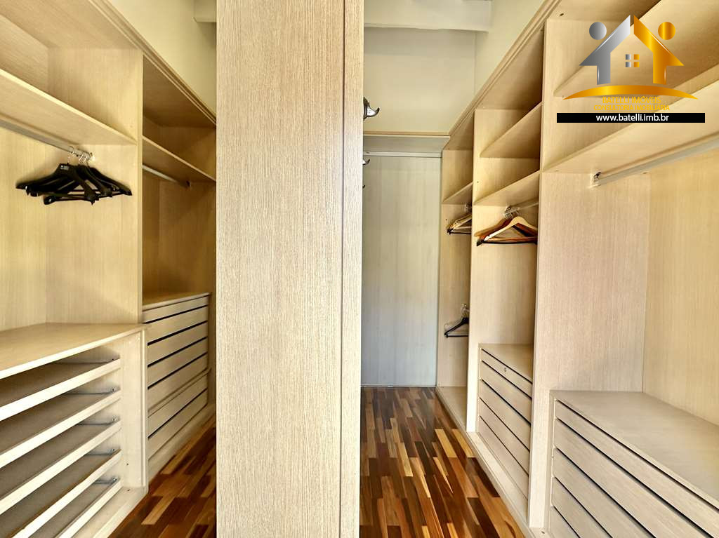 Suíte máster com saleta anexa e closet sr e sra, banheiro com espelho grande, 2 cubas e banheira.