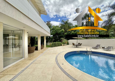 Living para 6 ambientes integrados com ar-condicionado Q e F, voltados para o lazer com varanda gourmet, piscina e jardim.