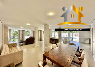 Sala de estar, home theater equipado, lareira à gás, sofá importado, bar, jantar, almoço.