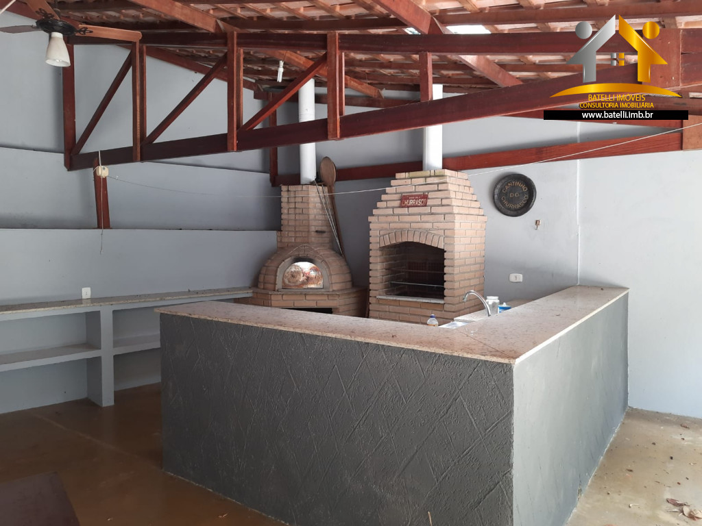 Quintal com frutíferas, espaço gourmet com churrasqueira e forno de pizza.