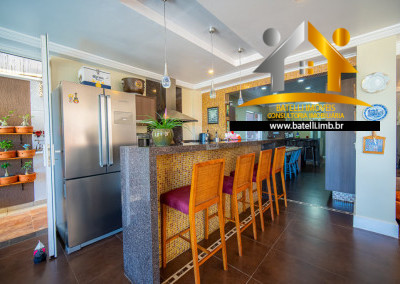 A copa se conecta à varanda, com vista para o quintal espaçoso e área com churrasqueira, ideal para momentos de lazer em família.